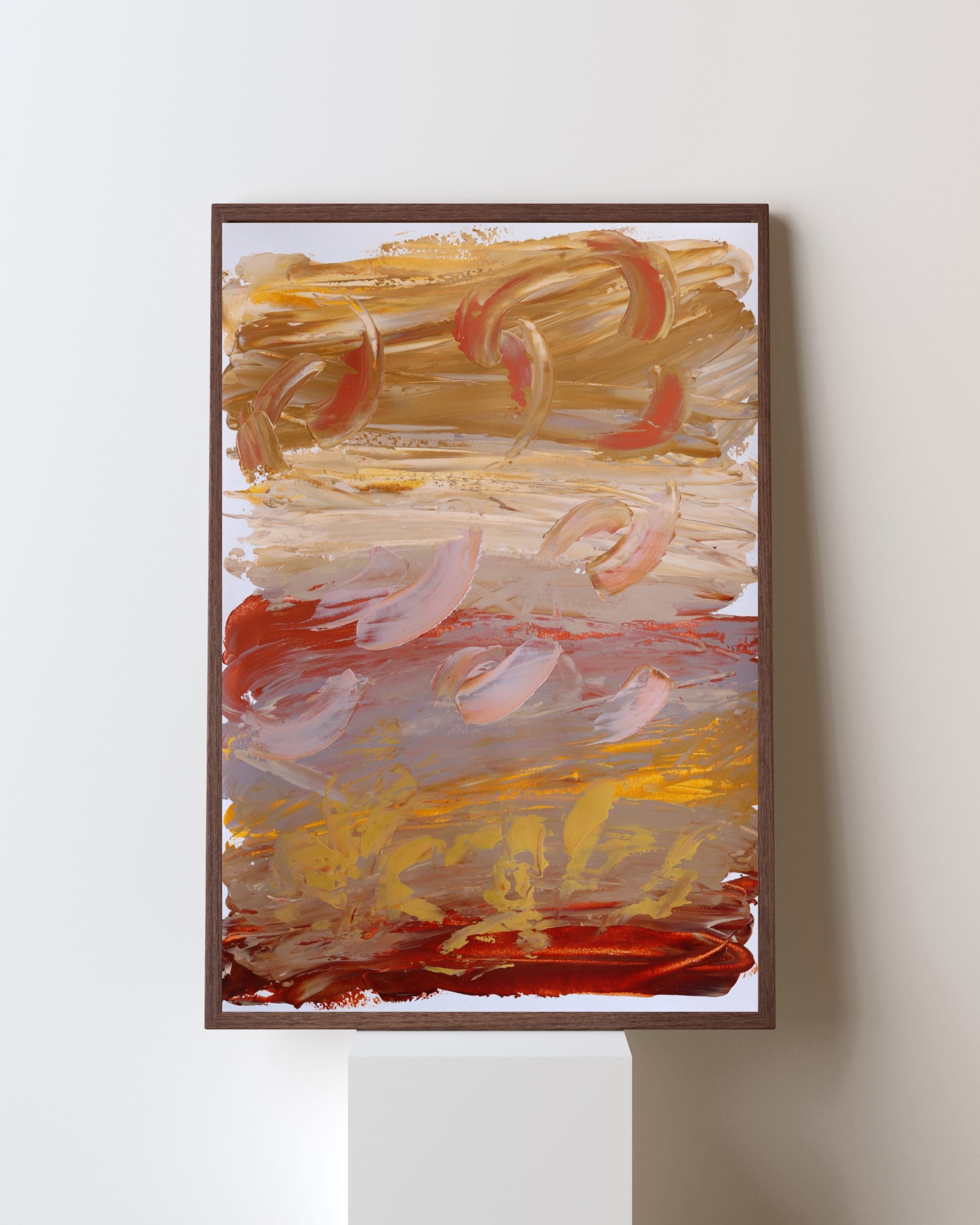 Though the artist has never physically visited the desert, it has long lived in her imagination. With family history rooted in the oil sector, spanning generations of fathers and grandfathers, the desert became a central motif of identity and childhood memory. This piece channels that unseen landscape through layered brushwork and warm, flowing tones, offering a quiet yet emotionally rich visual narrative.