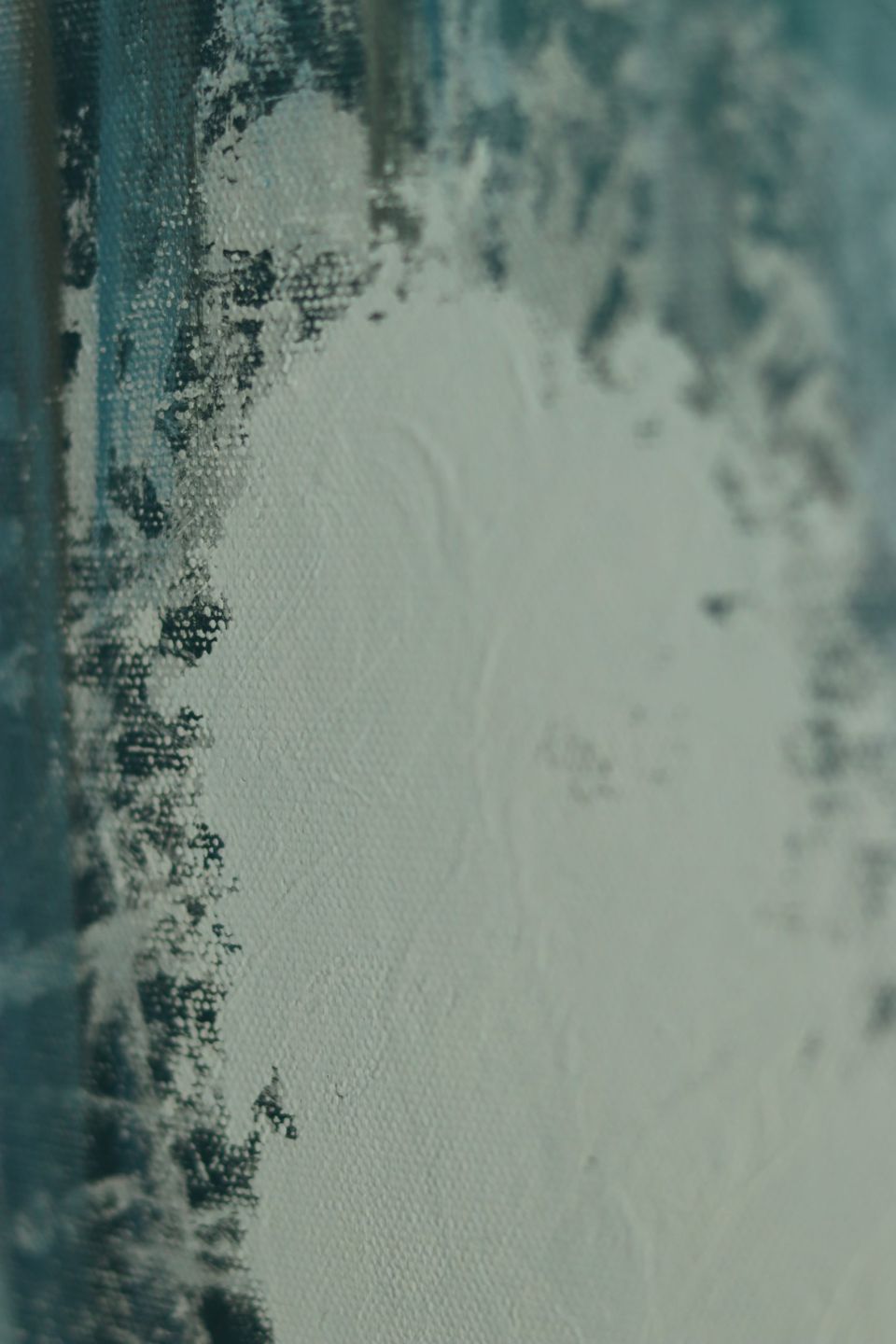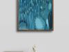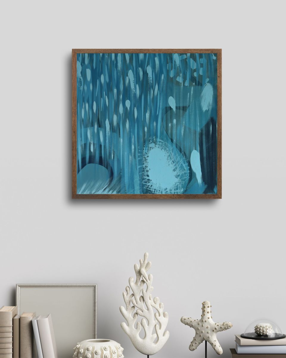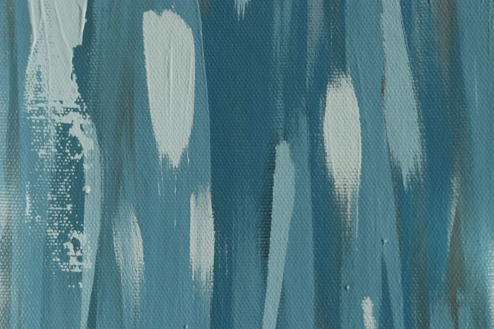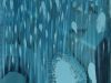 The background is covered in blues of raw acrylic, The brush is held aggressively, letting the mind flow — as chaos is something familiar state to my brain expressing it in colors and shapes as much as it reduces my anxiety it also increase it in the same time when I figure out that I’m able to see the chaos outside of my brain.