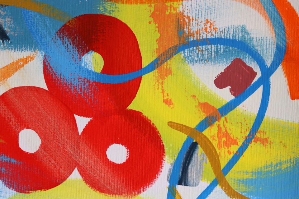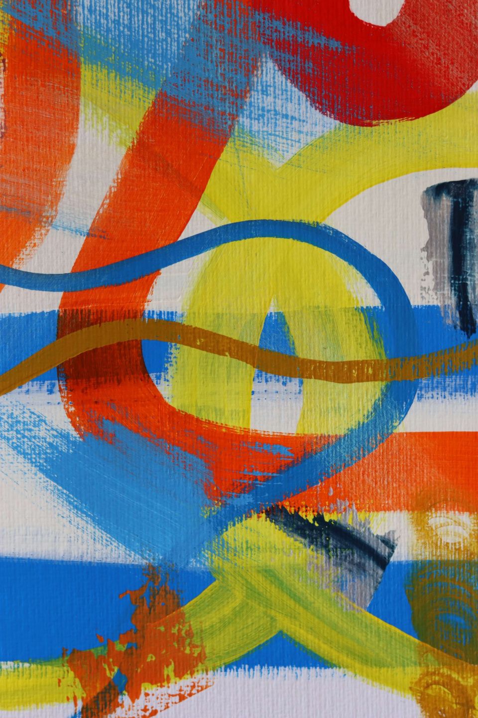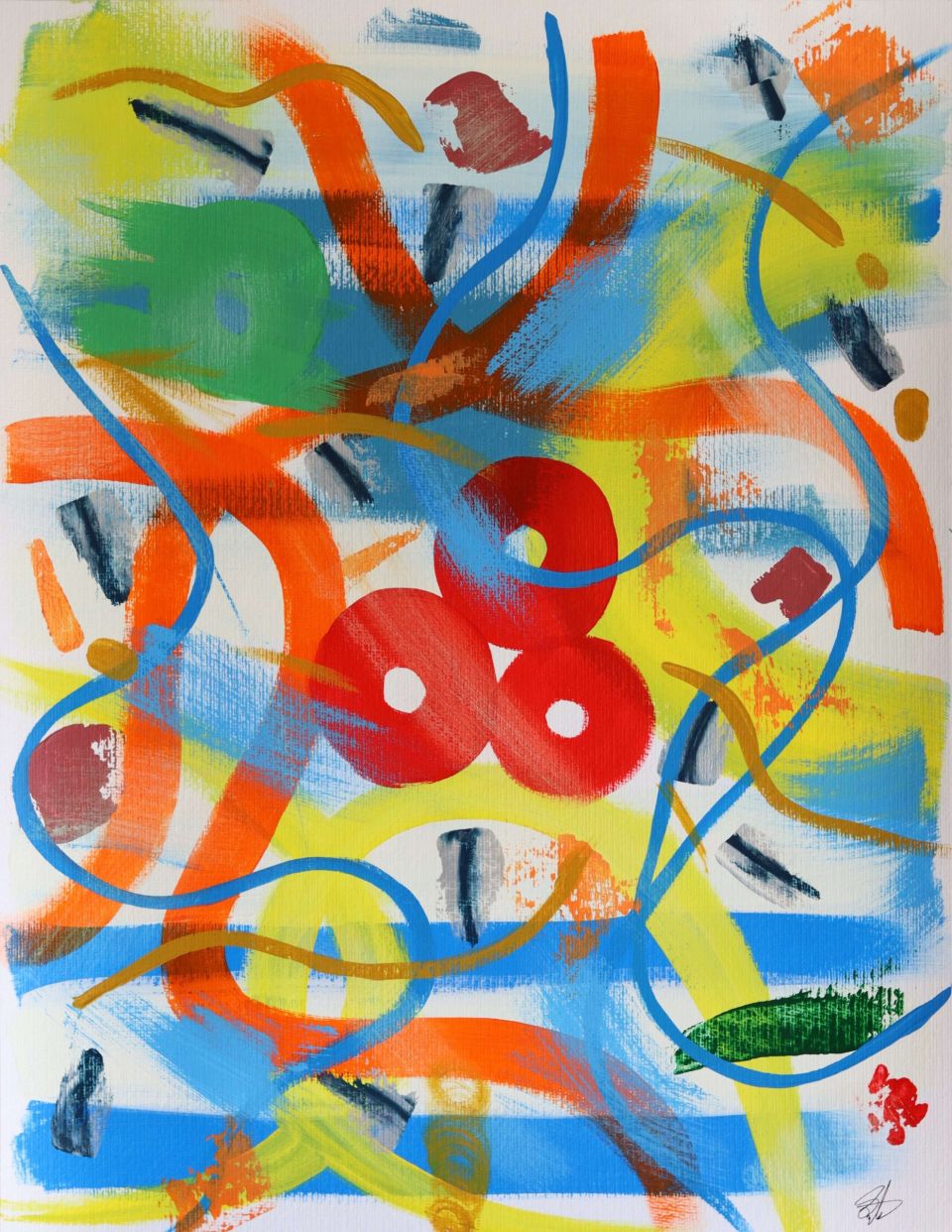 Vivid primary colors swirl through layered brushwork—spontaneous yet intentional. The result is a radiant, nostalgic expression of joy, connection, and freedom, told through the lens of abstraction.