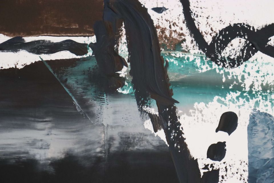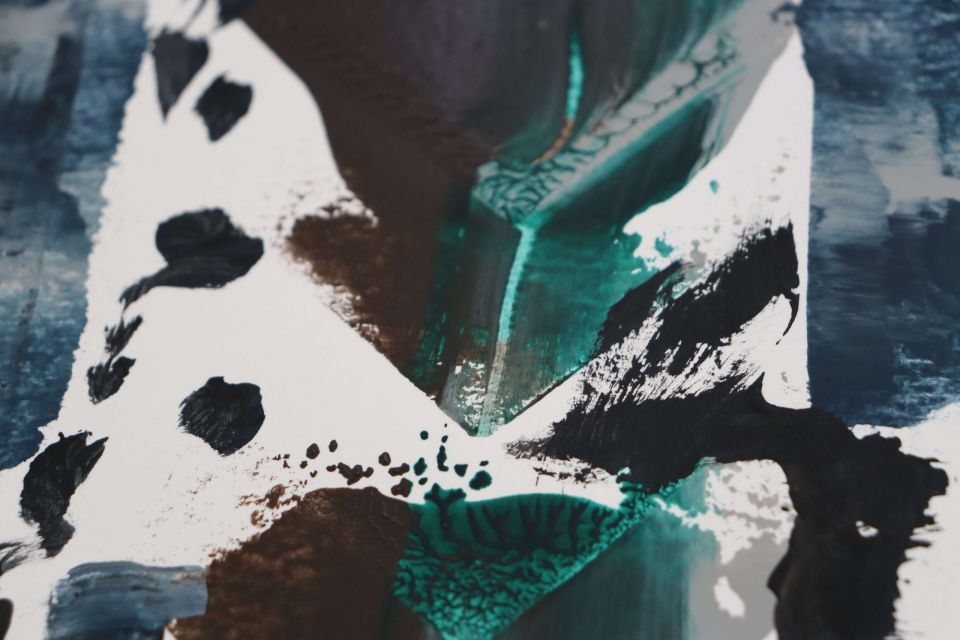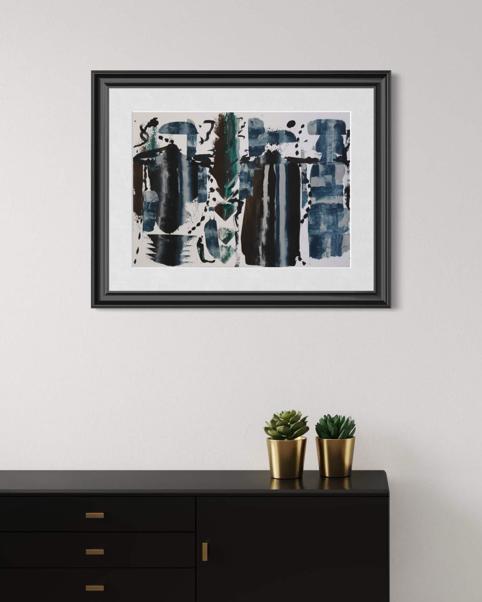 A quiet yet powerful reflection of what it means to exist between worlds—between what society calls normal and what feels authentically yours. Layered acrylic techniques, gestural brushwork, and fluid washes of deep blue, black, and muted green create a dialogue between stillness and movement, isolation and belonging. Each mark reveals a struggle for identity and peace within contrast, a visual story of finding yourself in the in-between. Expressive abstraction and emotional depth merge to form a compelling contemporary composition that resonates with collectors seeking authenticity, raw emotion, and modern aesthetics.