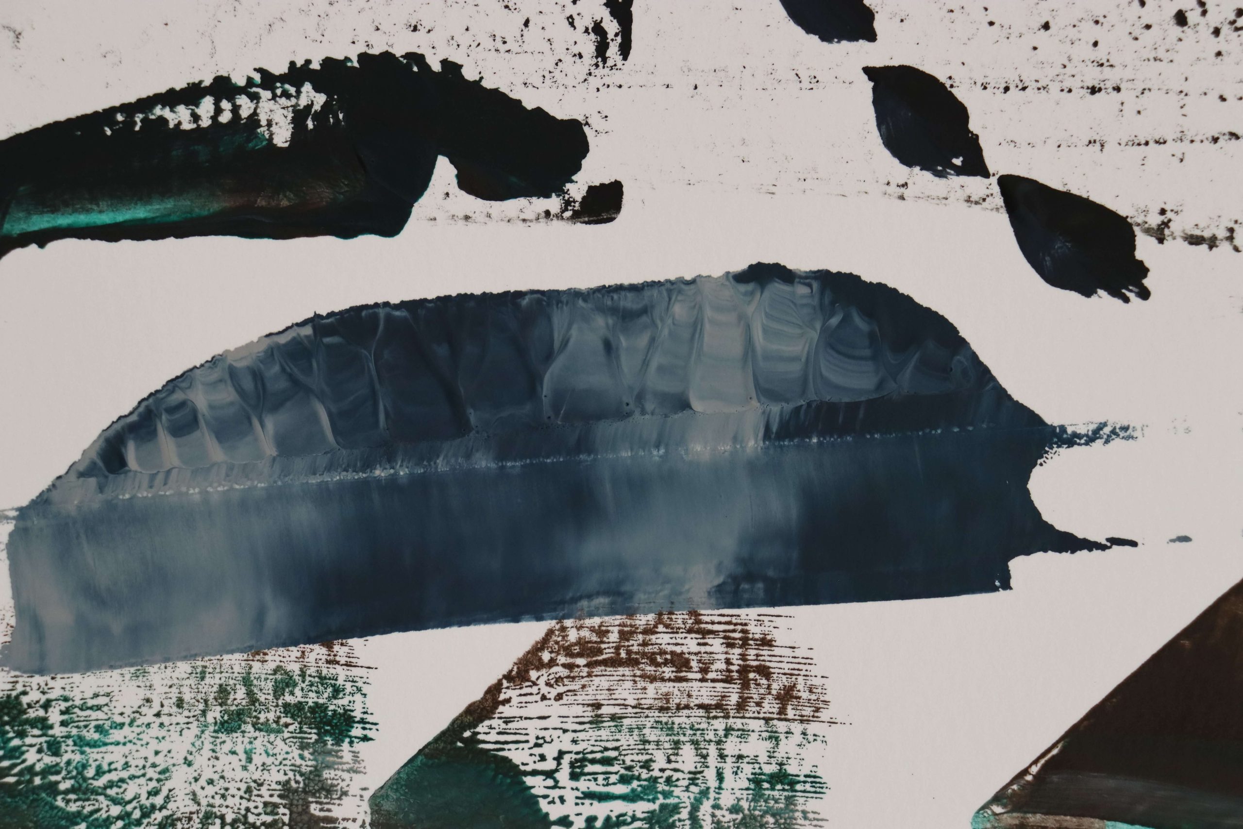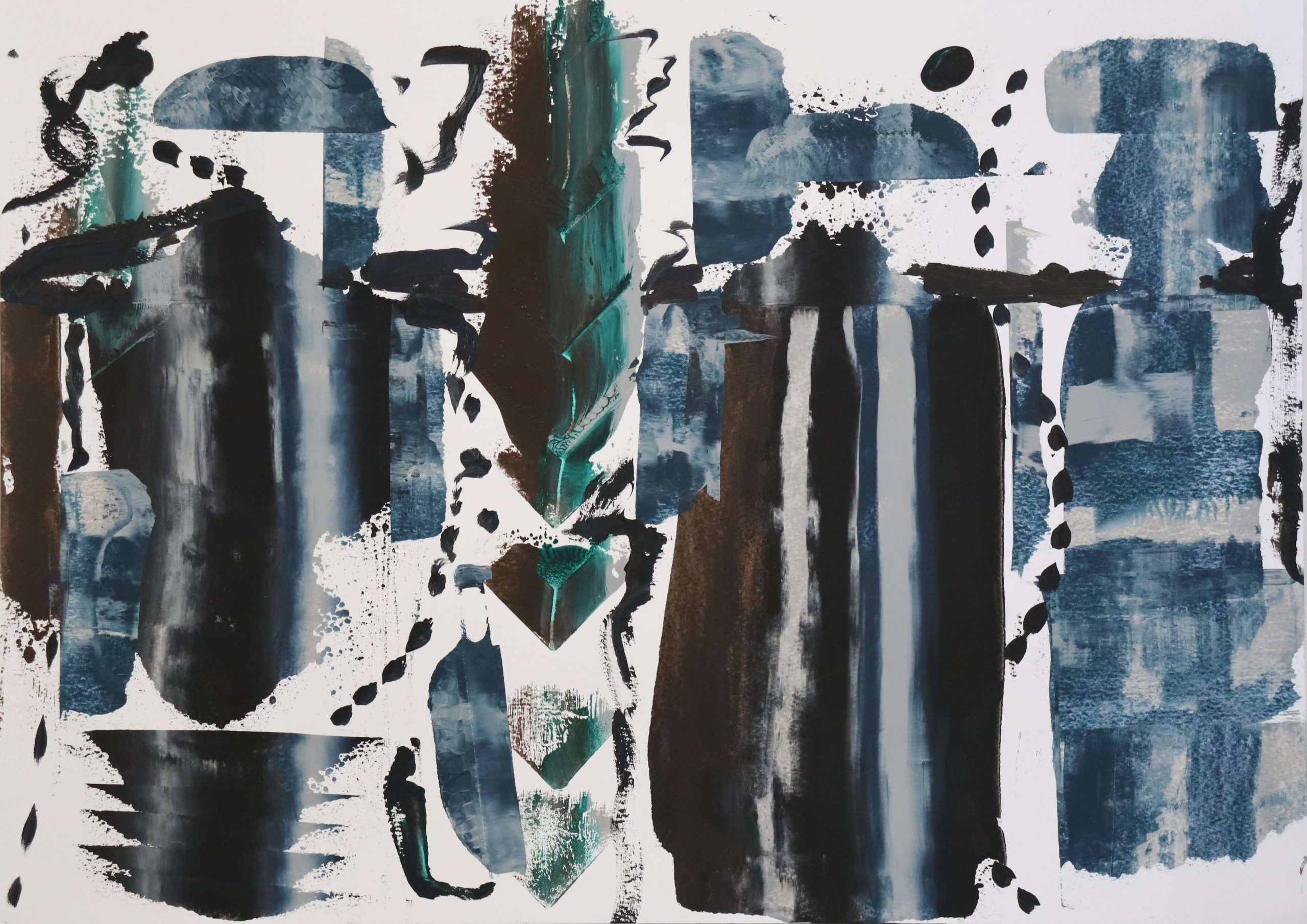 A quiet yet powerful reflection of what it means to exist between worlds—between what society calls normal and what feels authentically yours. Layered acrylic techniques, gestural brushwork, and fluid washes of deep blue, black, and muted green create a dialogue between stillness and movement, isolation and belonging. Each mark reveals a struggle for identity and peace within contrast, a visual story of finding yourself in the in-between. Expressive abstraction and emotional depth merge to form a compelling contemporary composition that resonates with collectors seeking authenticity, raw emotion, and modern aesthetics.