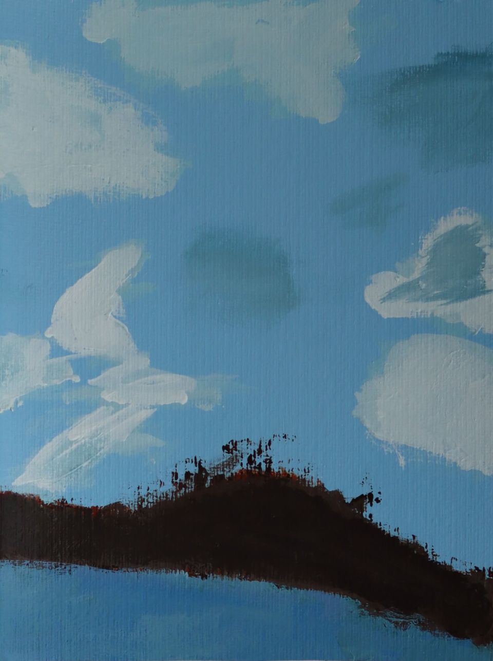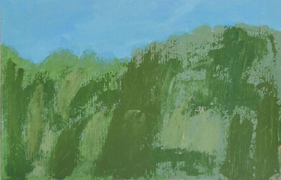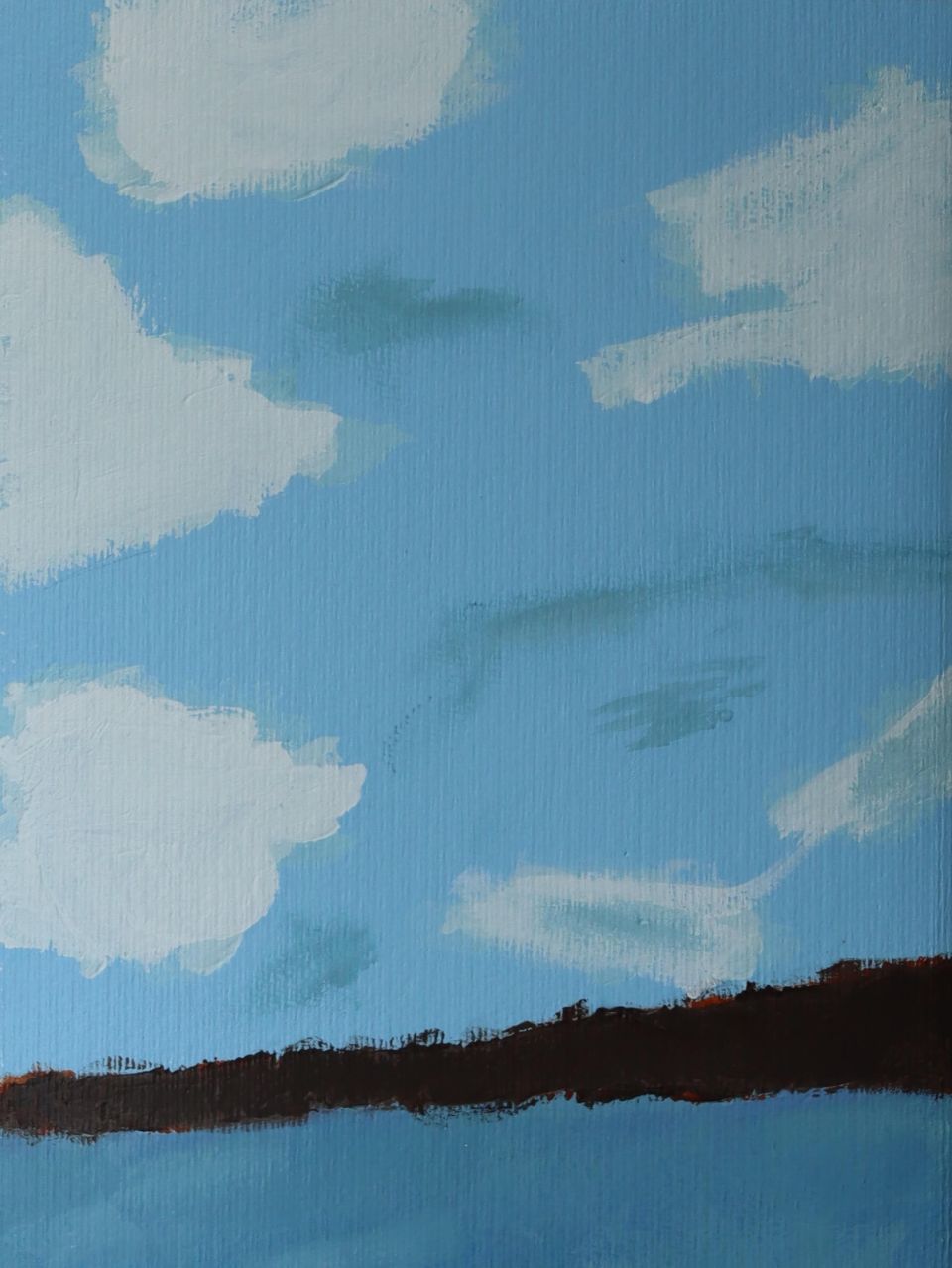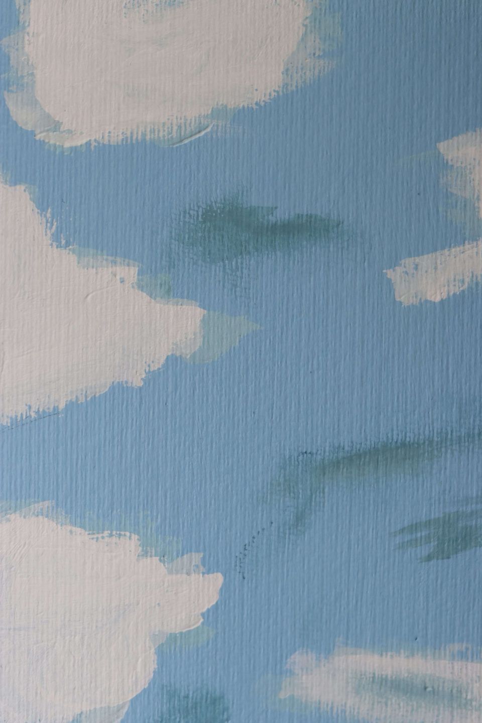 With a soft yet abstract combination of sky blues, cloud whites, grass greens, and earthy browns, this piece evokes a sense of serenity and tranquility at first glance. But beneath its calm surface lies a quiet mystery—a story untold, a place unnamed.