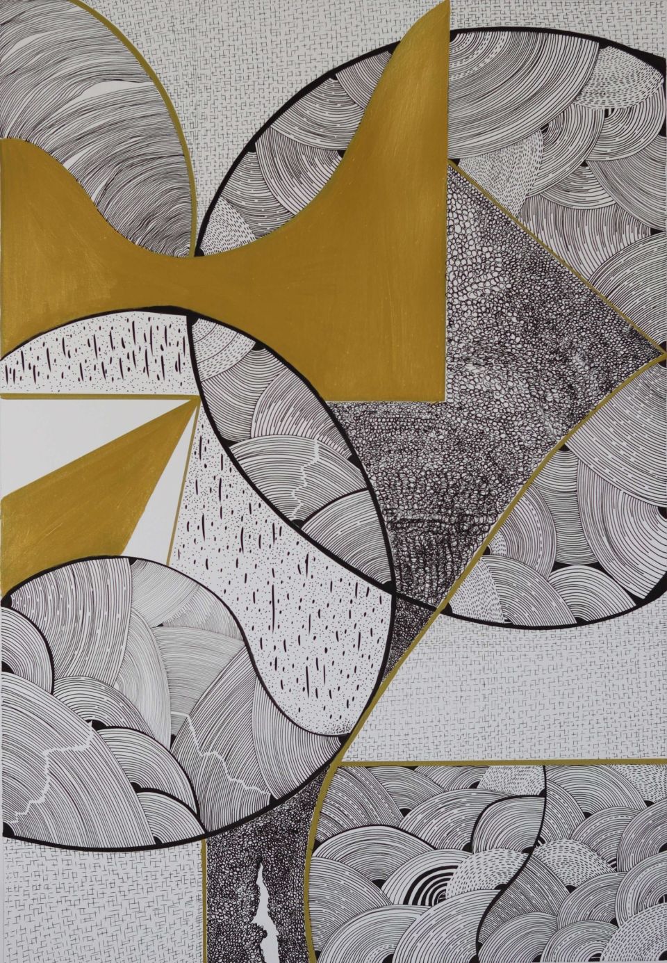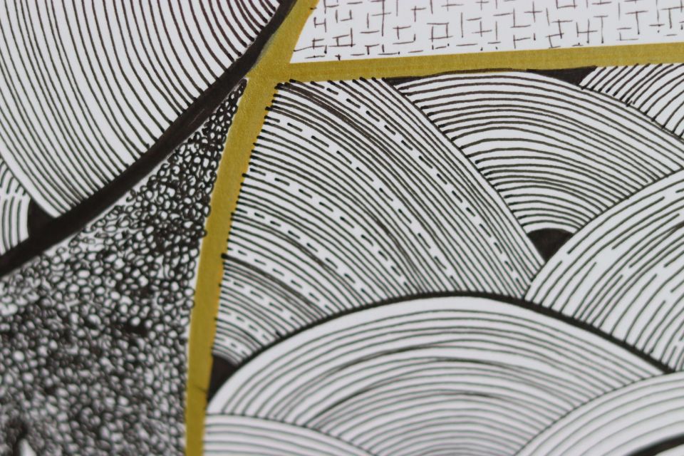 Created with pigment ink pens, oil pens, and acrylic, the piece blends fluid motion with meditative detail—an abstract reflection of water, stillness, and the emotional pull of coastal spaces. It invites the viewer into a sensory journey of balance, contrast, and motion inspired by the sea’s edge.