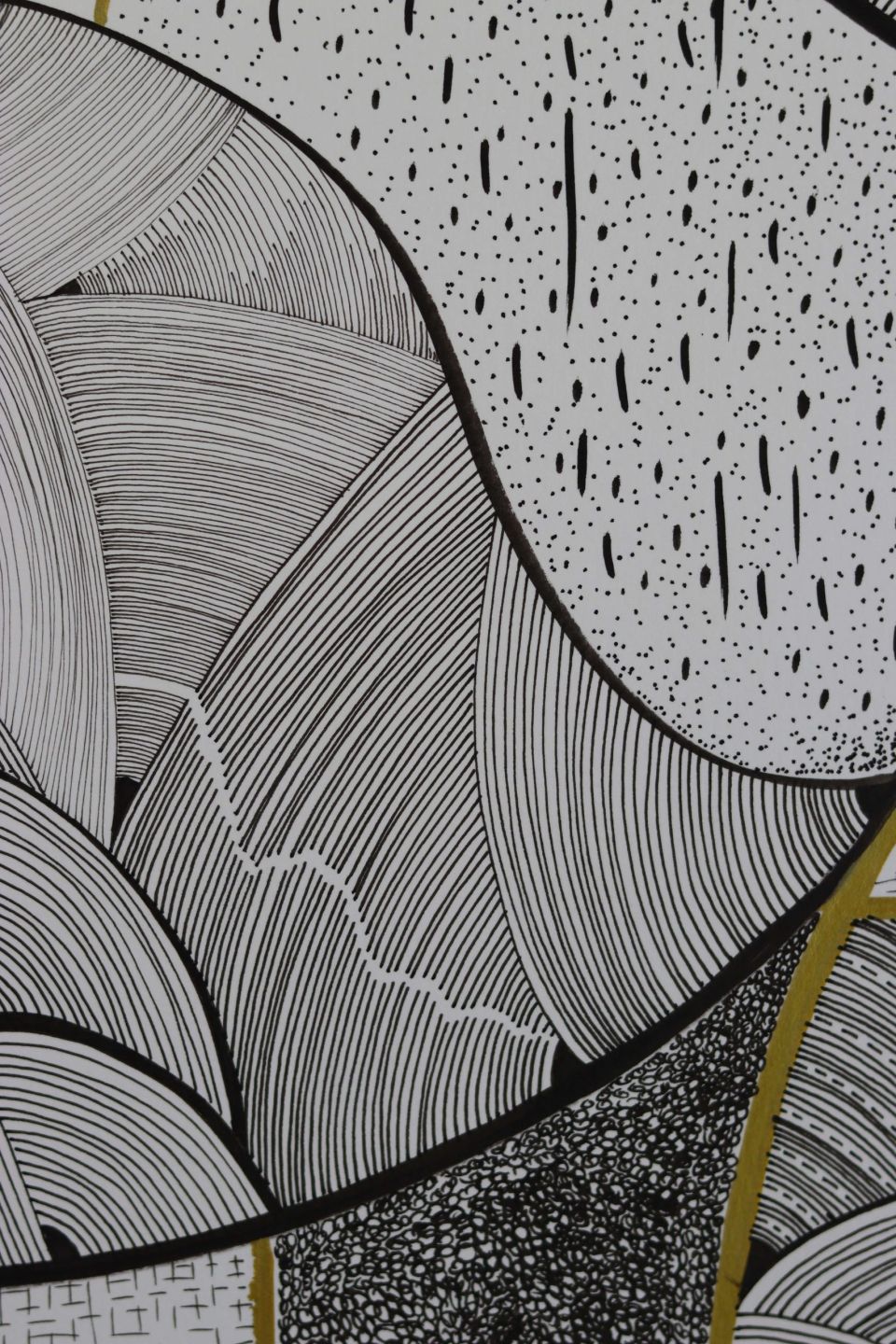 Created with pigment ink pens, oil pens, and acrylic, the piece blends fluid motion with meditative detail—an abstract reflection of water, stillness, and the emotional pull of coastal spaces. It invites the viewer into a sensory journey of balance, contrast, and motion inspired by the sea’s edge.