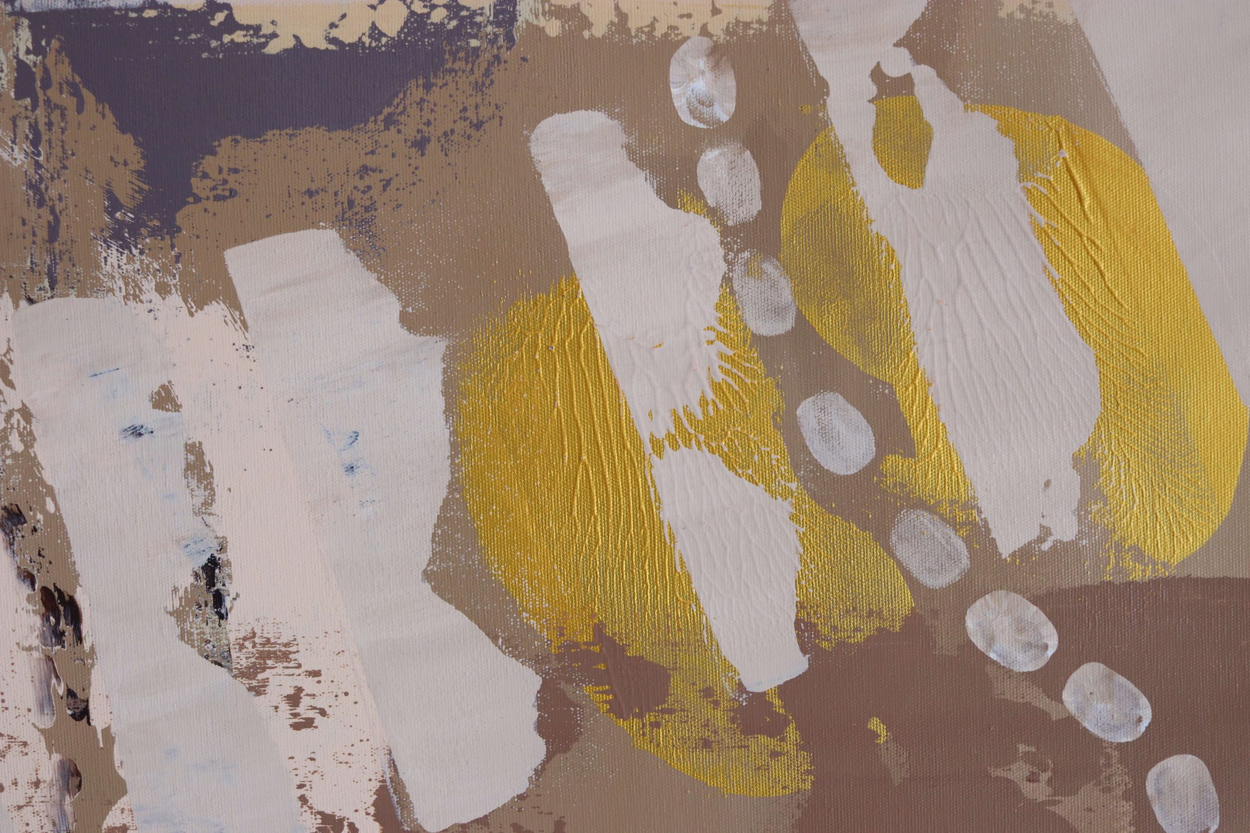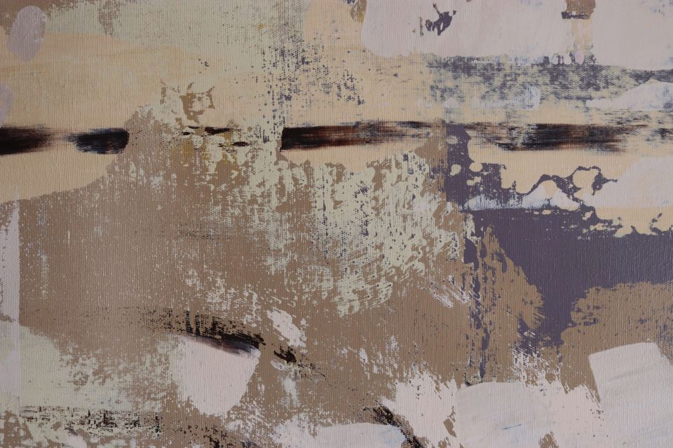 Its muted, earthy palette meets unexpected textures—fingerprints, smears, pressed patterns—that make the invisible visible. This work is a simple expression of a complicated inner storm.
