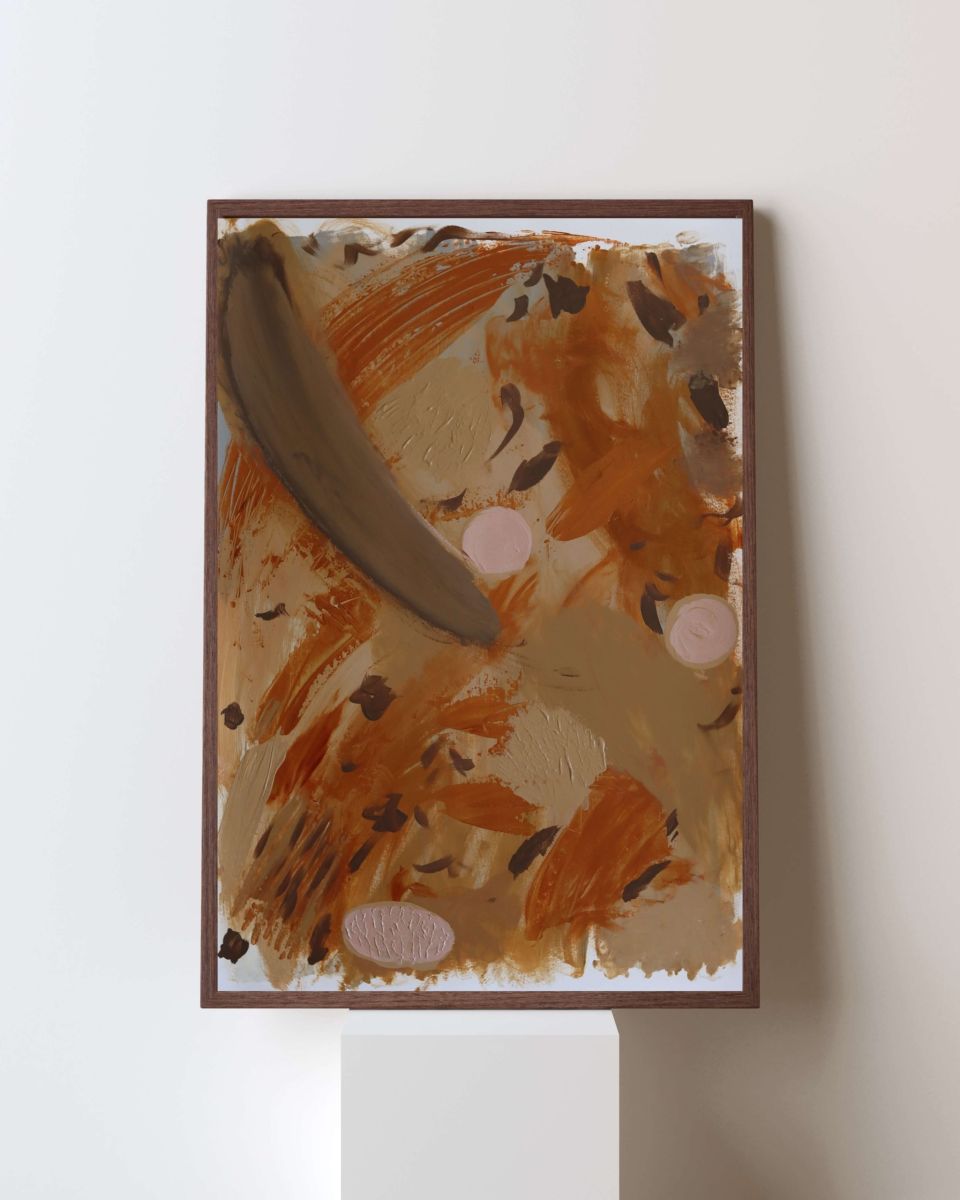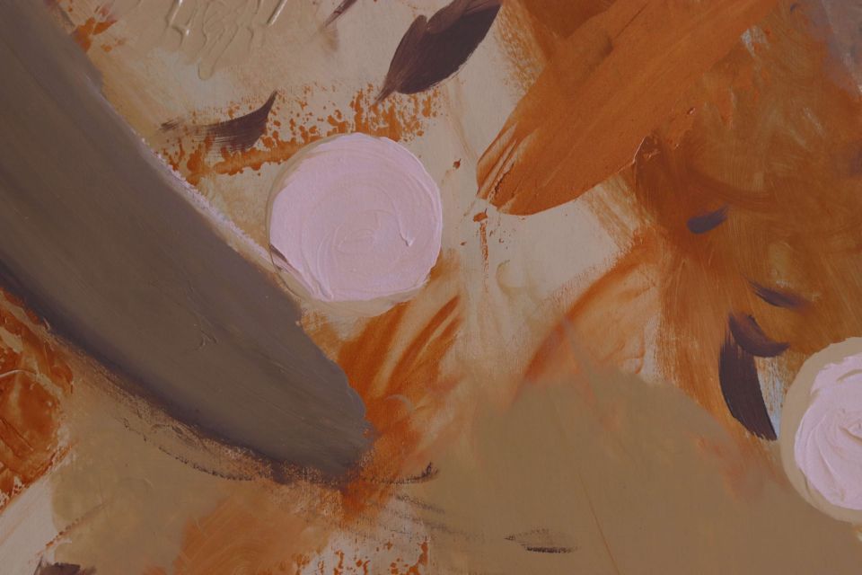A blend of earthy tones swirls in an abstract dance, evoking nature’s calm and the warmth of memory.